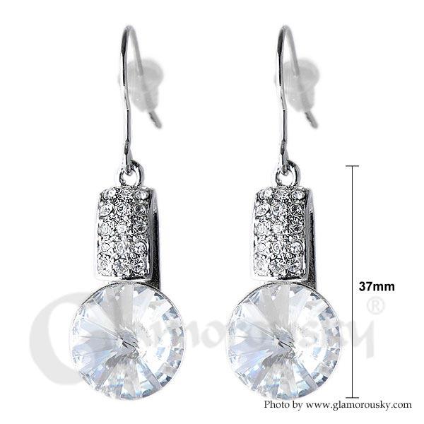 Elegant Earrings with Silver Crystal Glass and Silver Austrian Element Crystals