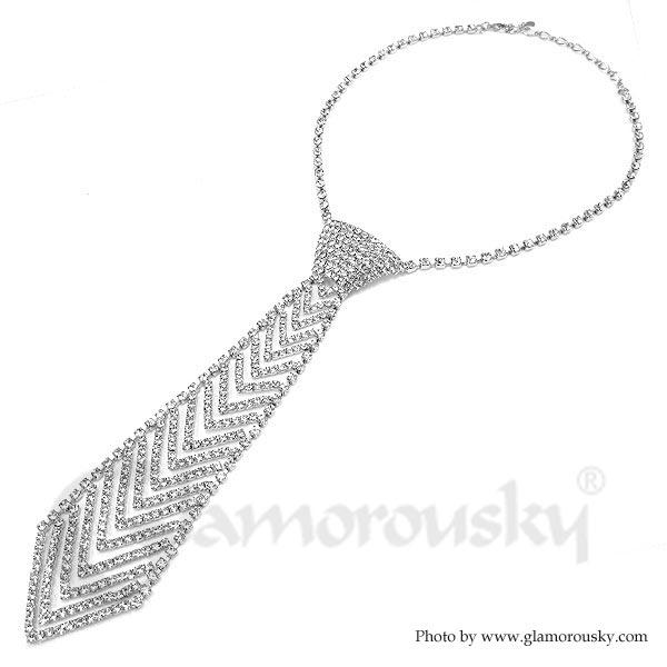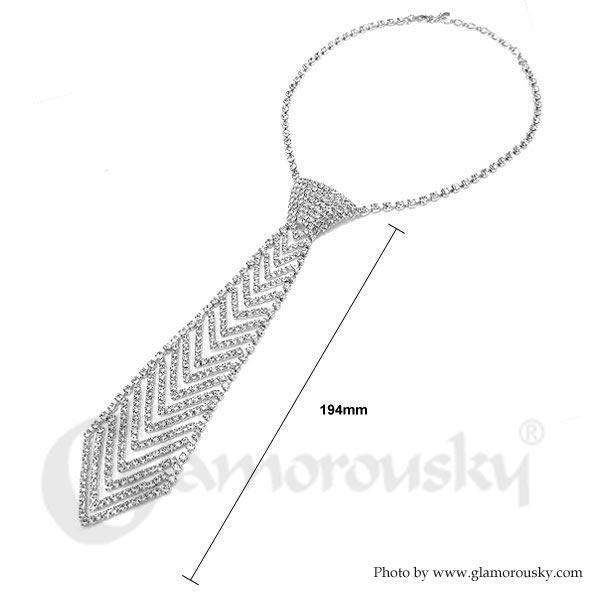 Glistening Arrow-pattern Tie-like Necklace with Silver Austrian Element Crystals