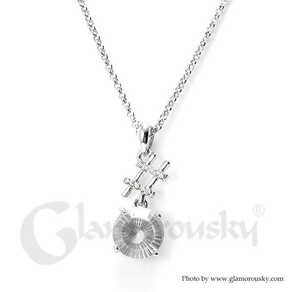 Glistering Circular Pendant with Silver Austrian Element Crystals and CZ and Necklace