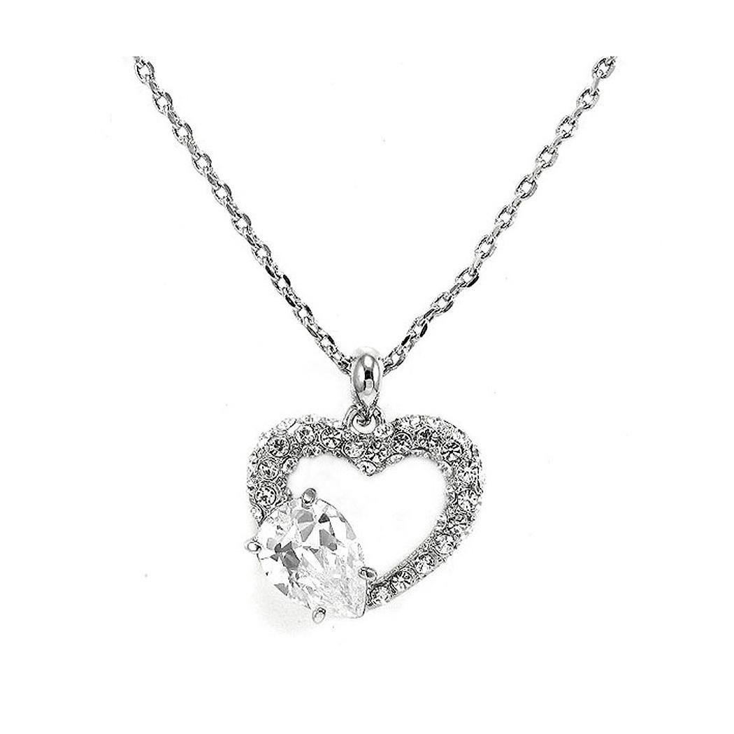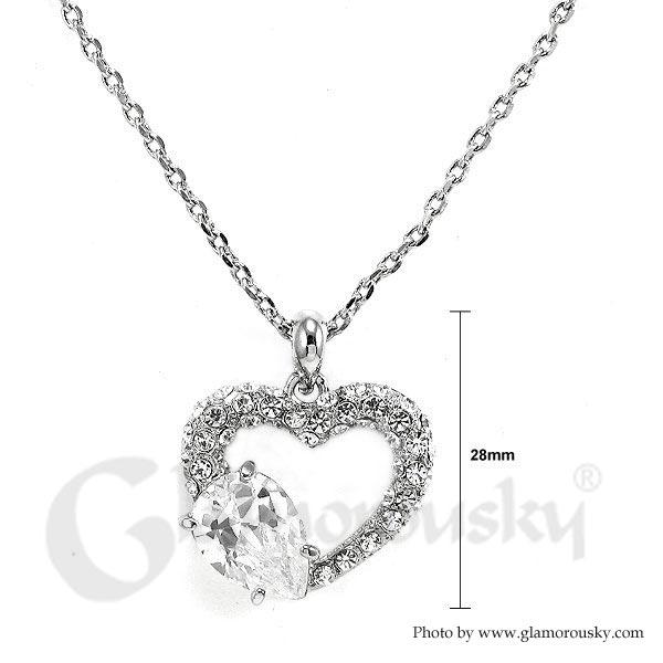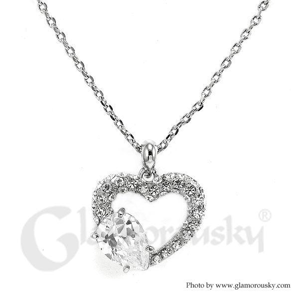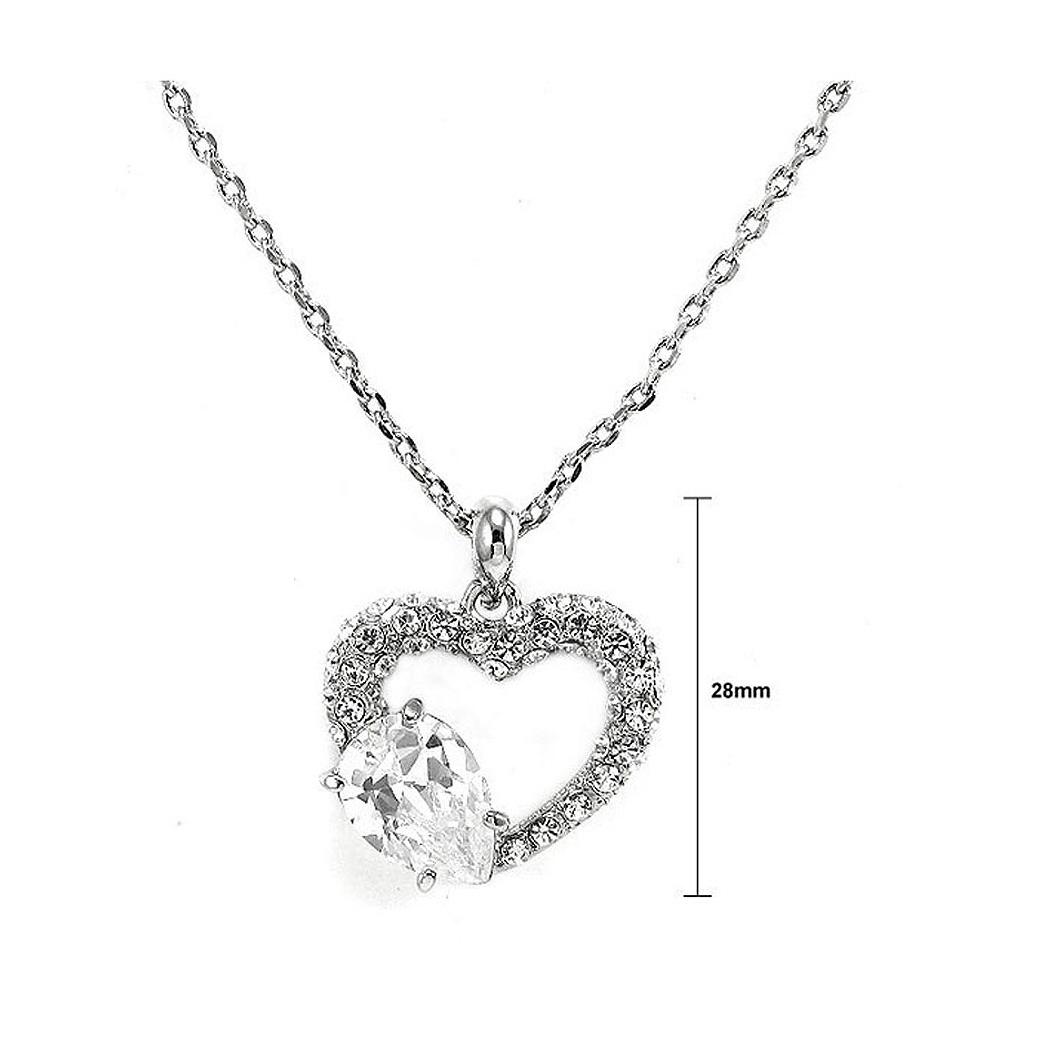 Glistering Joyful Heart Pendant with Silver Austrian Element Crystals and CZ and Necklace