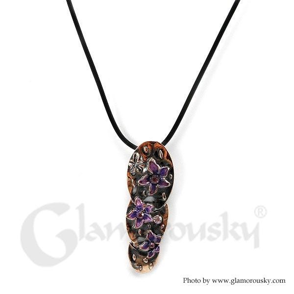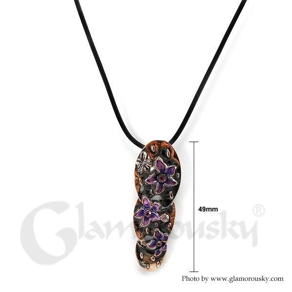 Ethnic Flair Pendant with Purple Austrian Element Crystals and Necklace