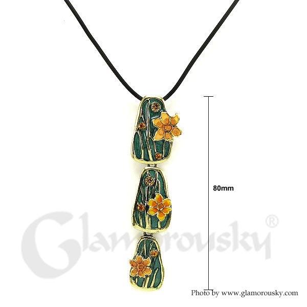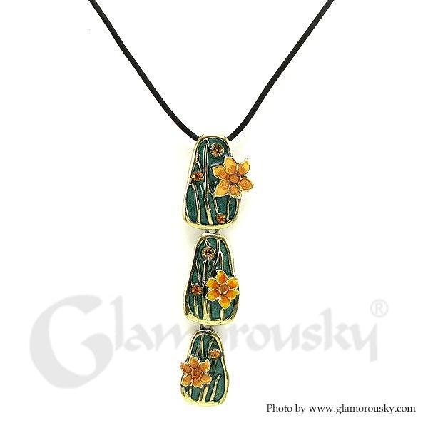 Ethnic Flair Pendant with Orange Austrian Element Crystals and Necklace