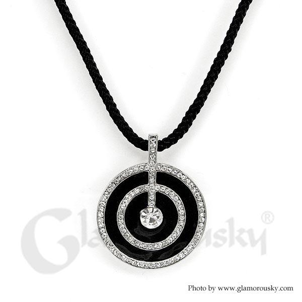 Twinkling Round Pendant with Silver Austrian Element Crystals and CZ and Necklace
