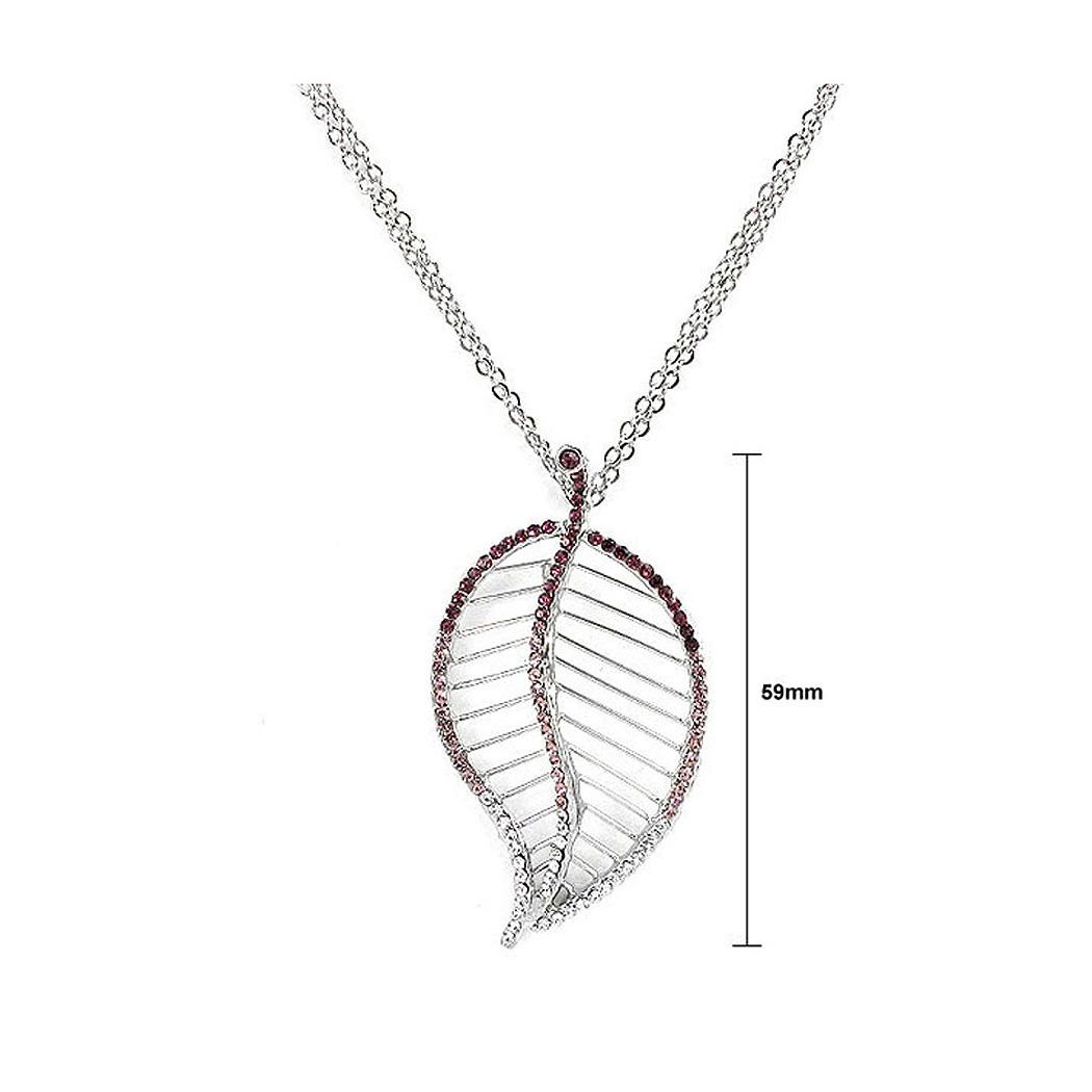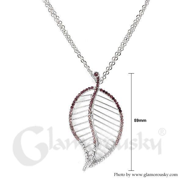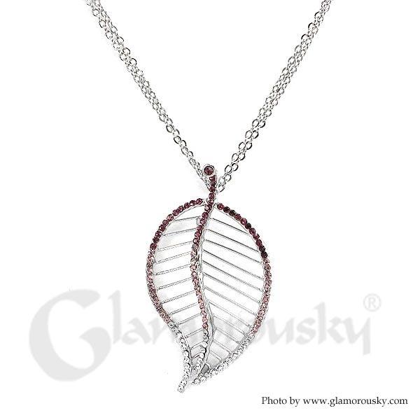 Twinkling Leaf Pendant with Silver, Pink and Purple Austrian Element Crystals and Necklace