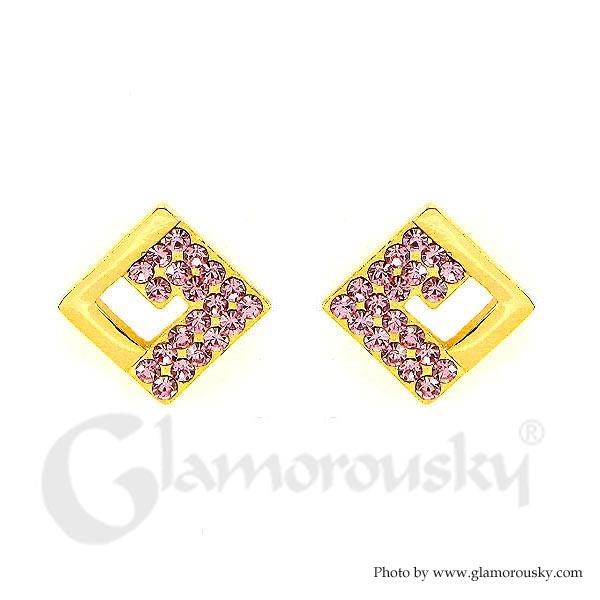 Glistering Rectangle Earrings with Pink Austrian Element Crystals