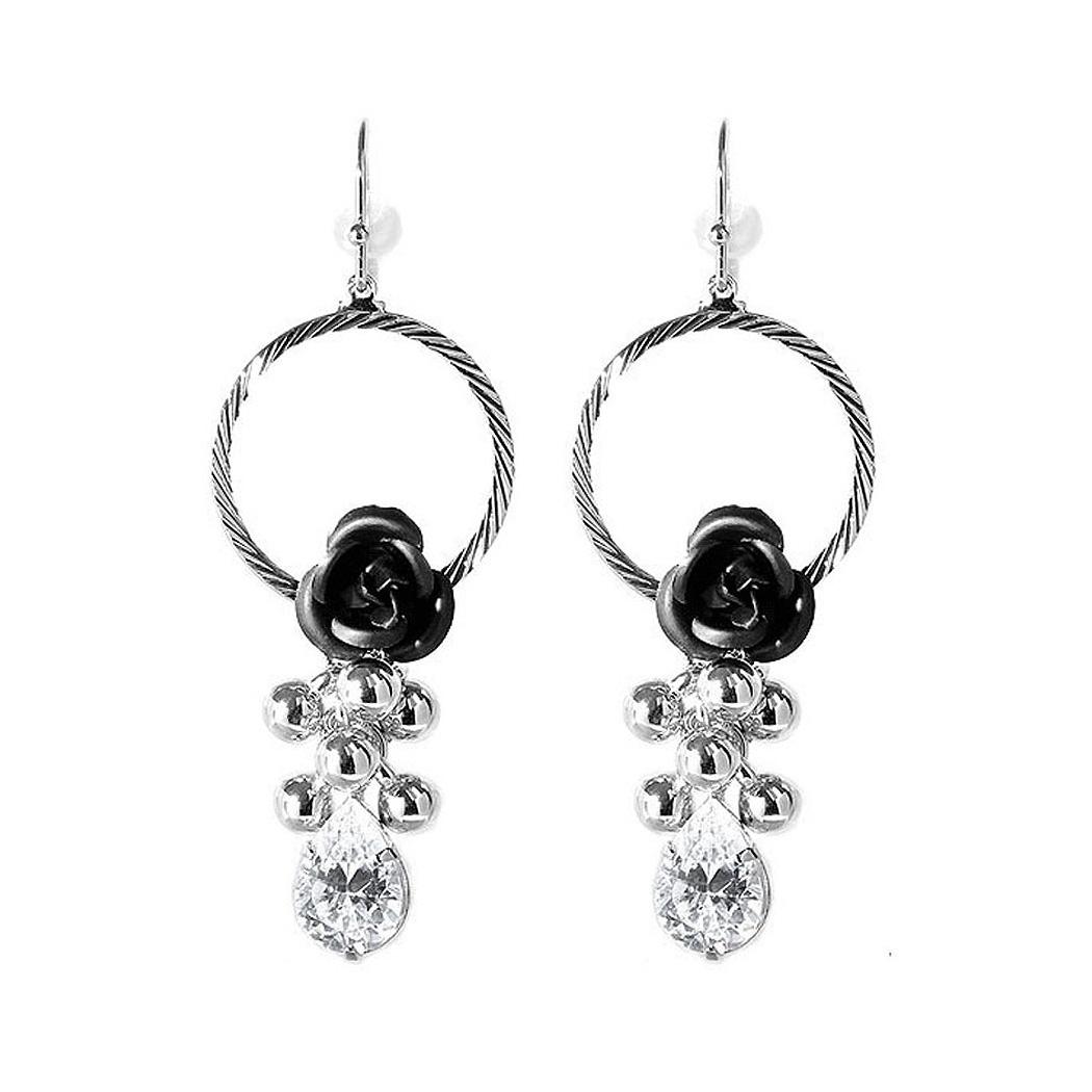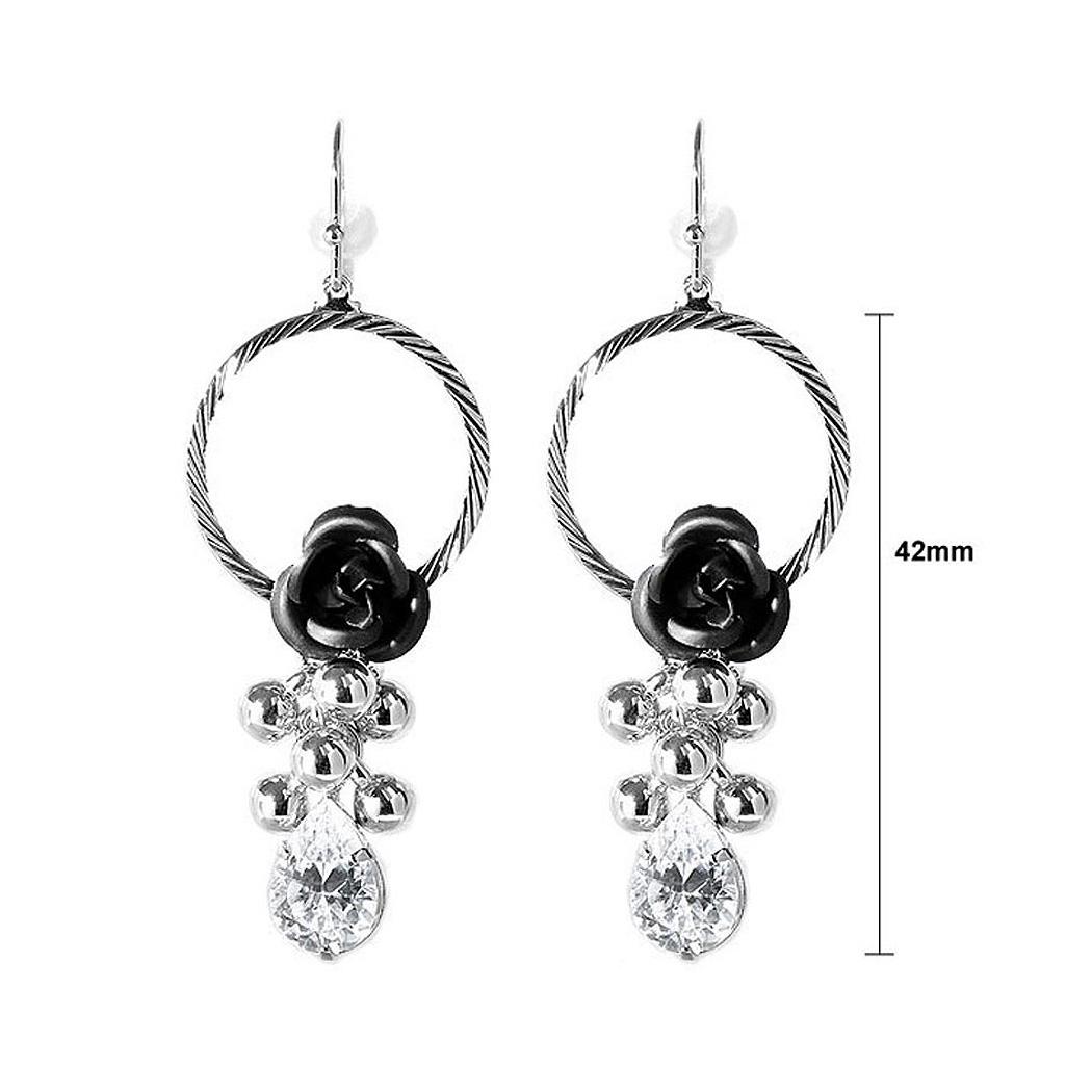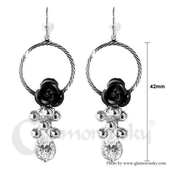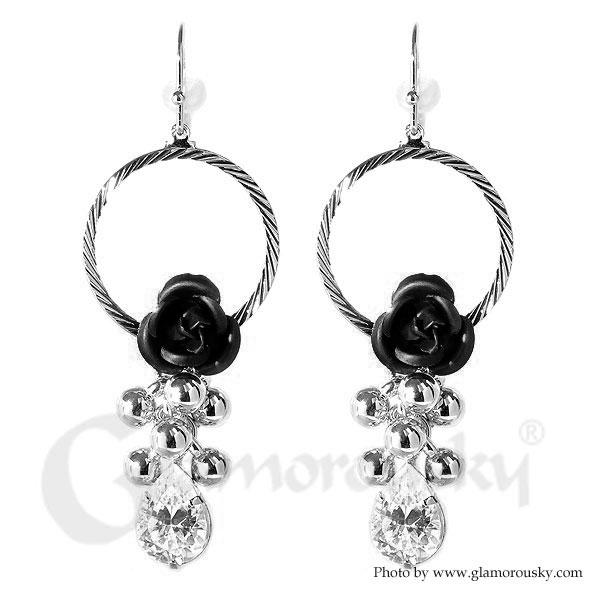 Elegant Black Rose Earrings with Crystals Glass