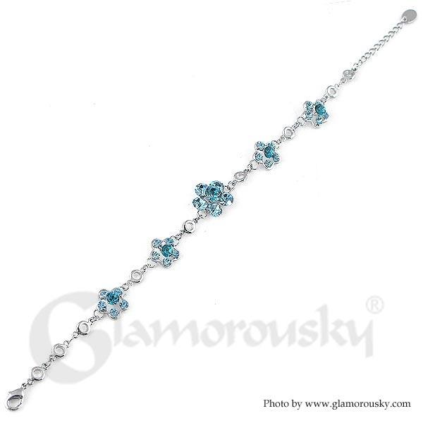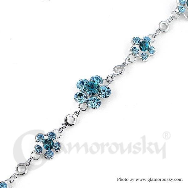 Gracious Flower Bracelet with Blue Austrian Element Crystal
