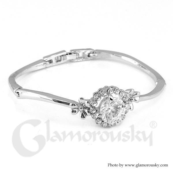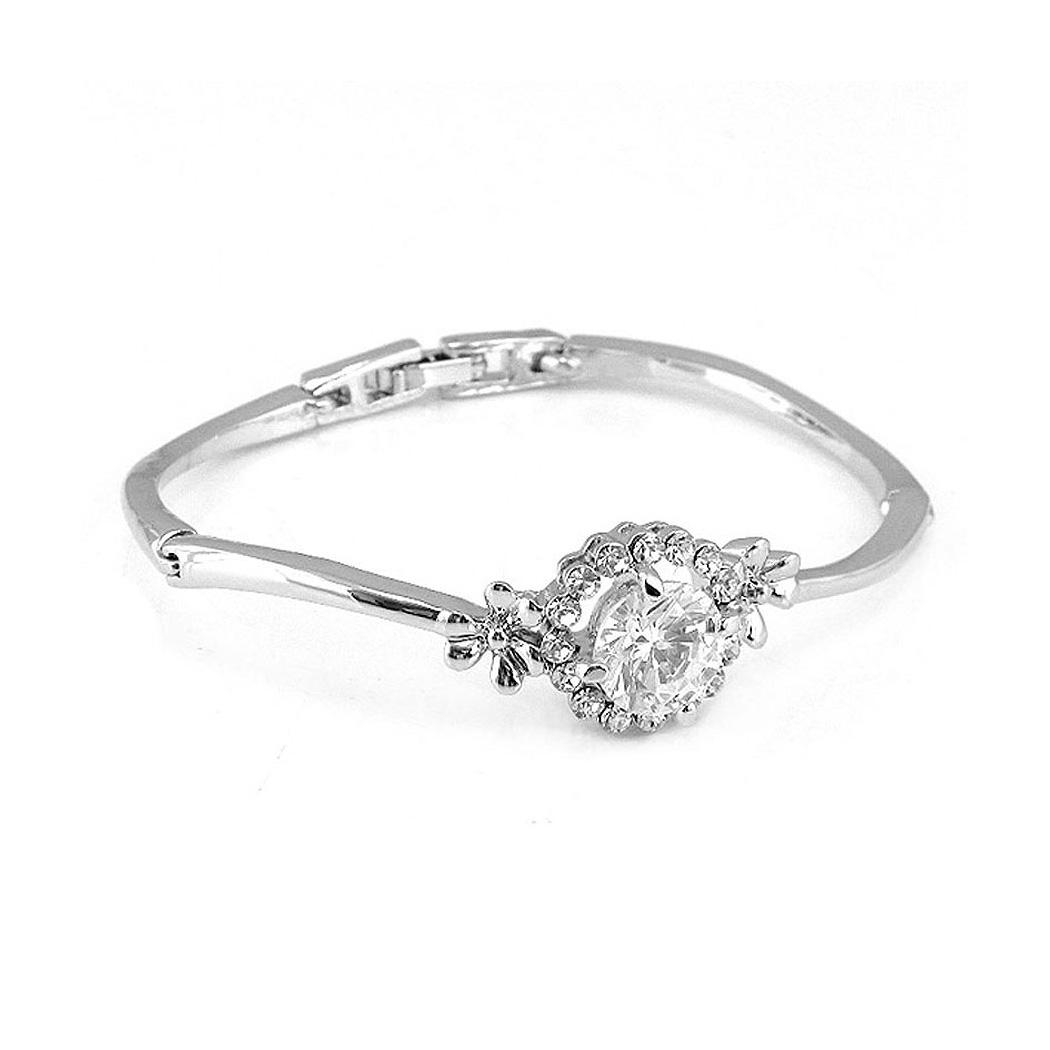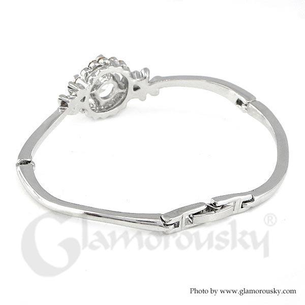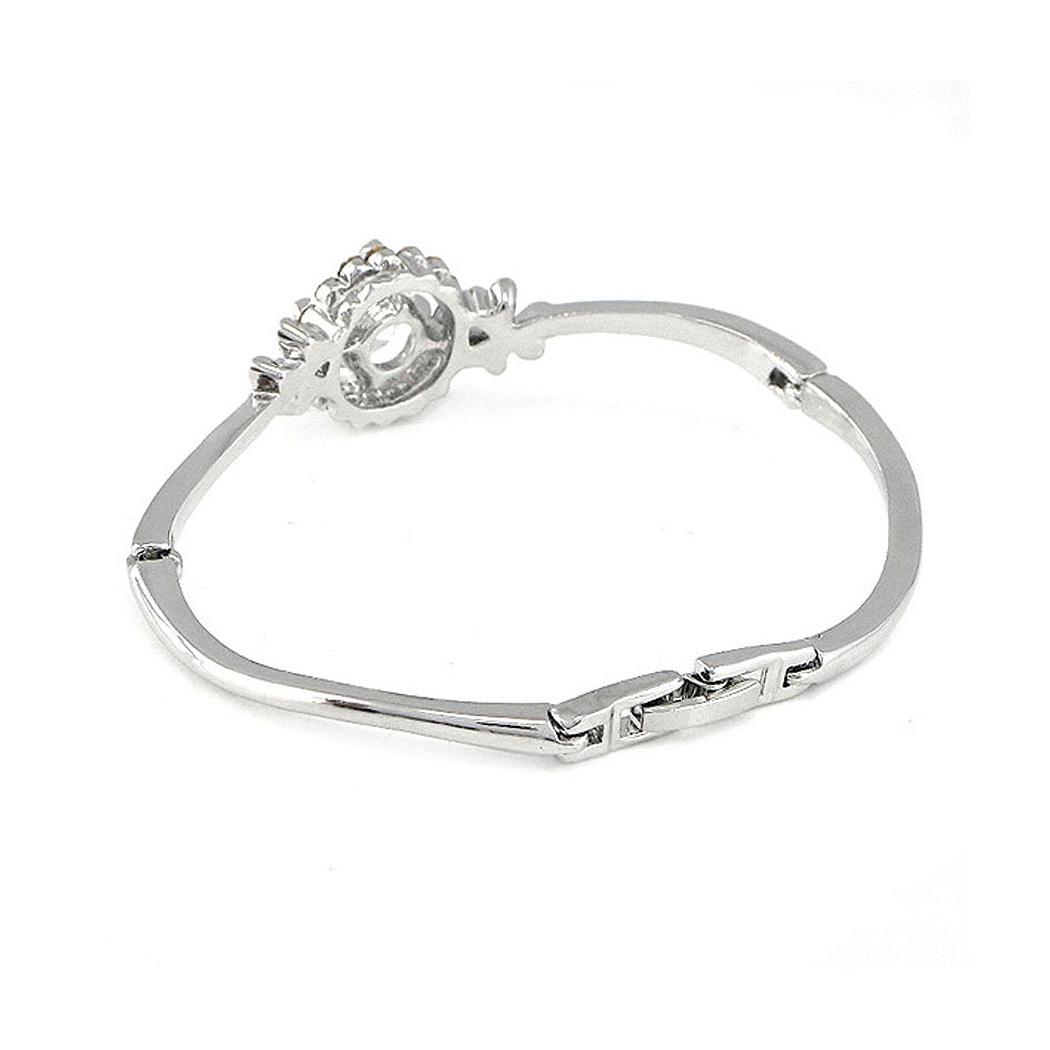 Enchanting Flower Bangle with Silver Austrian Element Crystal and CZ