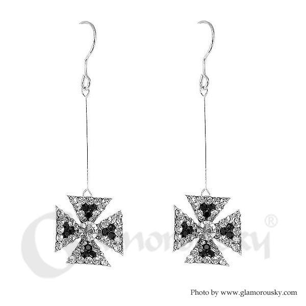 Dazzling Earrings with Silver and Black Austrian Element Crystals