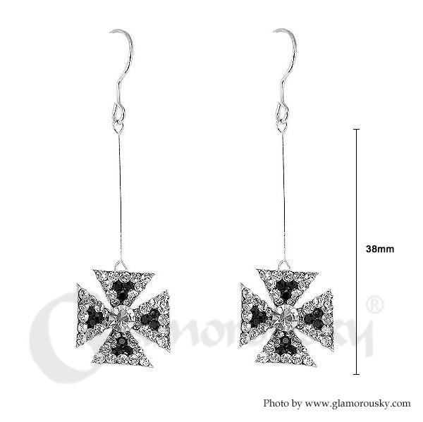 Dazzling Earrings with Silver and Black Austrian Element Crystals