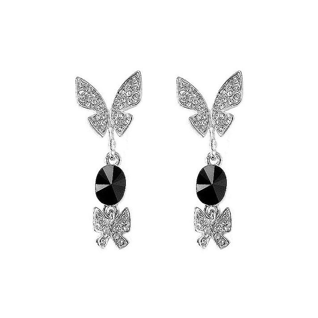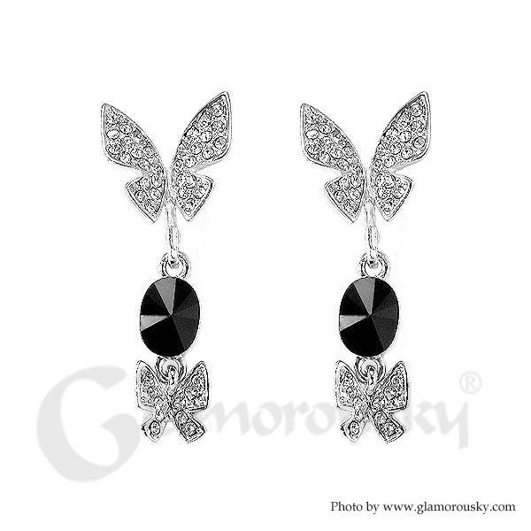 Dazzling Butterfly Earrings with Silver and Black Austrian Element Crystals