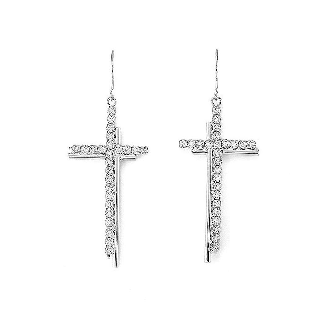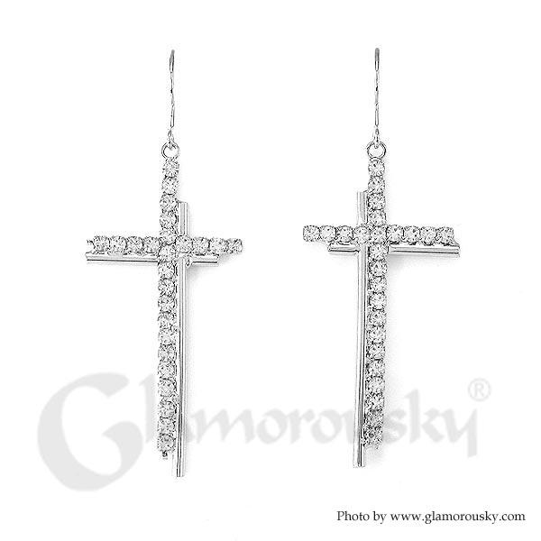 Dazzling Cross Earrings with Silver Austrian Element Crystal