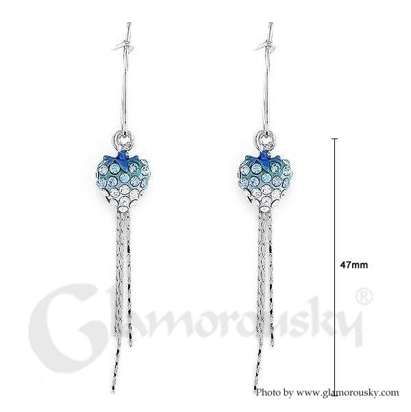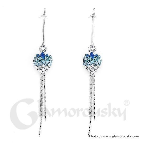 Dazzling Strawberry Earrings with Silver and Blue Austrian Element Crystals