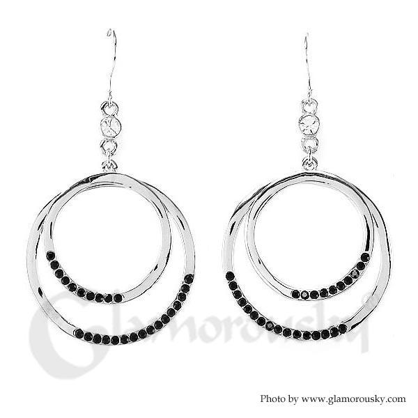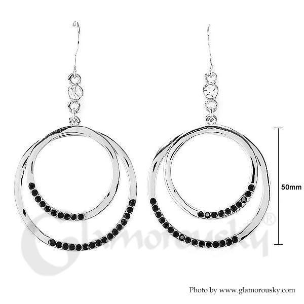 Enchanting Earrings with Silver and Black Austrian Element Crystals