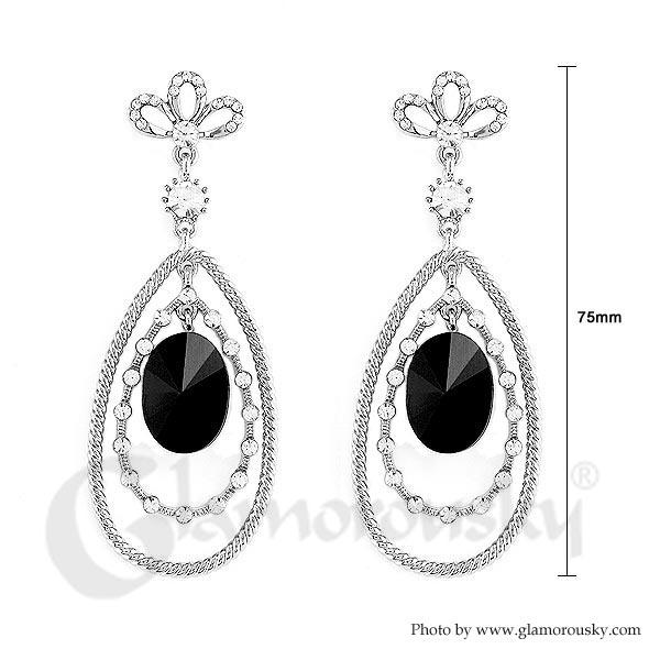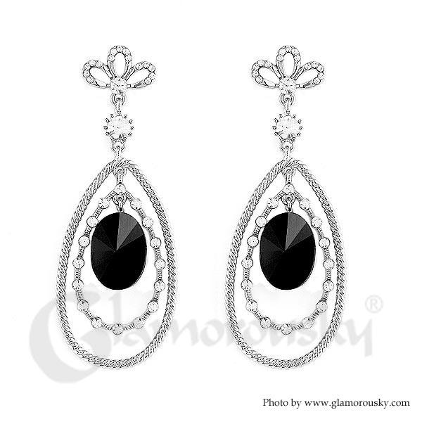 Enchanting Earrings with Silver and Black Austrian Element Crystals