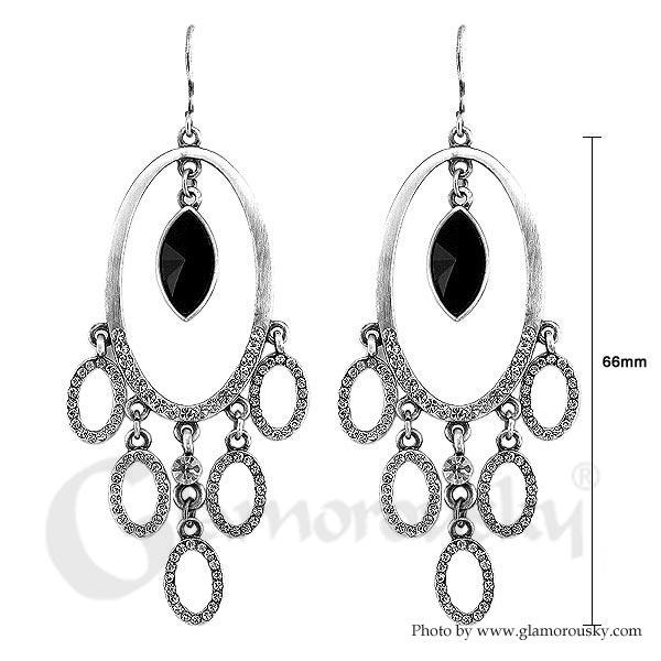 Enchanting Earrings with Silver and Black Austrian Element Crystals
