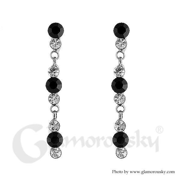 Enchanting Earrings with Silver and Black Austrian Element Crystals