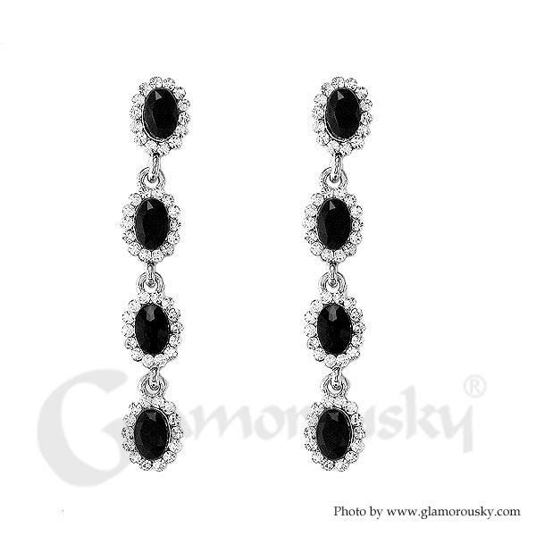 Enchanting Earrings with Silver and Black Austrian Element Crystals