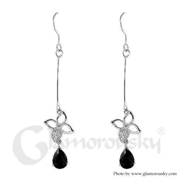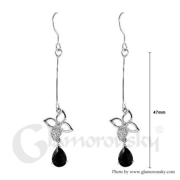 Glimmering Flower Earrings with Silver and Black Austrian Element Crystals