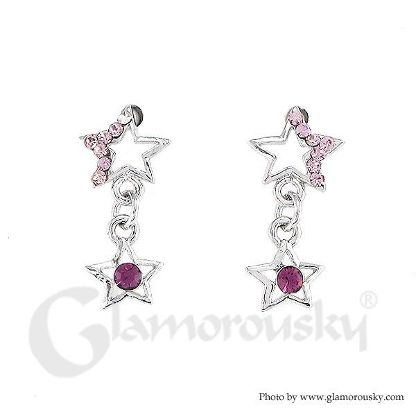 Glimmering Stars Earrings with Purple Austrian Element Crystal