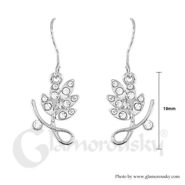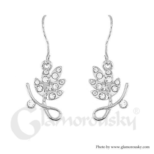 Elegant Leaf Earrings with Silver Austrian Element Crystal