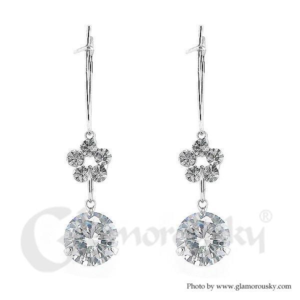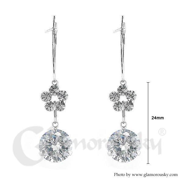 Glimmering Flower Earrings with Silver Austrian Element Crystal
