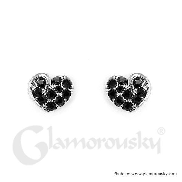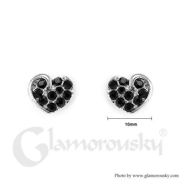 Charming Heart Earrings with Black Austrian Element Crystal