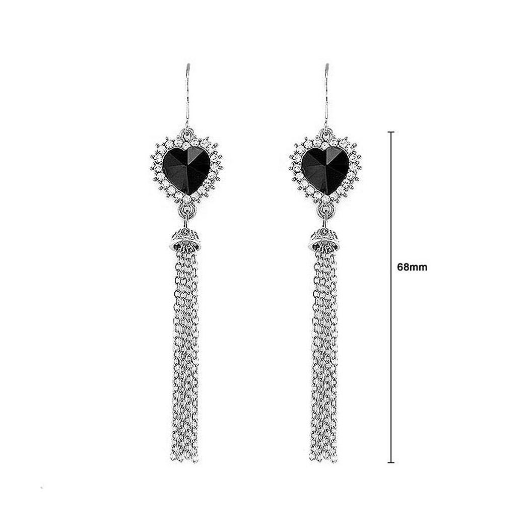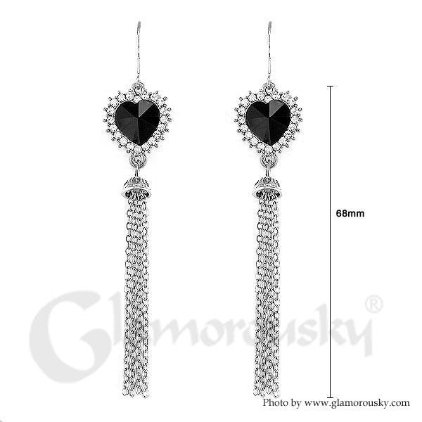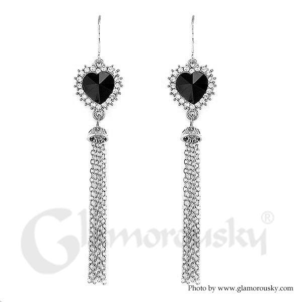 Charming Heart Earrings with Silver and Black Austrian Element Crystals