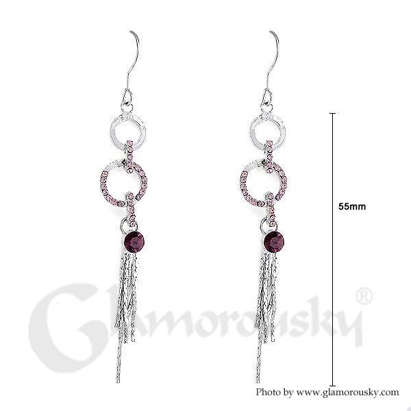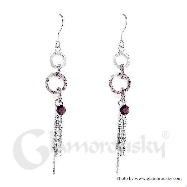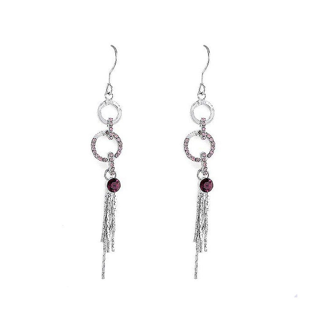 Elegant Tassel Earrings with Purple Austrian Element Crystal