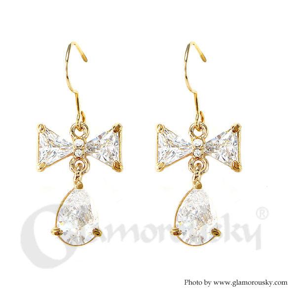 Dazzling Ribbon Earrings with Silver Austrian Element Crystal