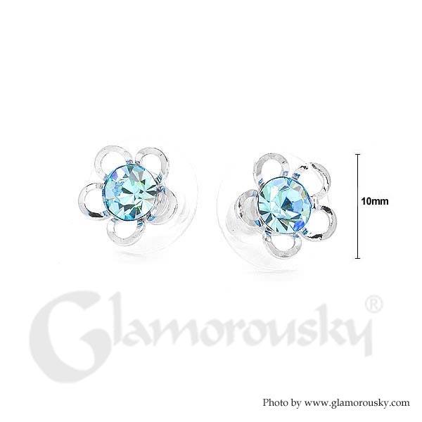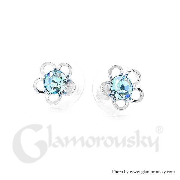 Flower Shape Pair Earrings with Blue Austrian Element Crystal
