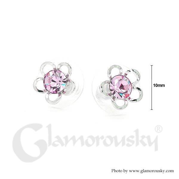 Flower Shape Pair Earrings with Purple Austrian Element Crystals