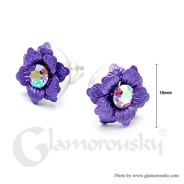 Purple Flower Earrings with Austrian Element Crystal
