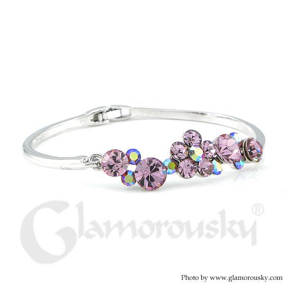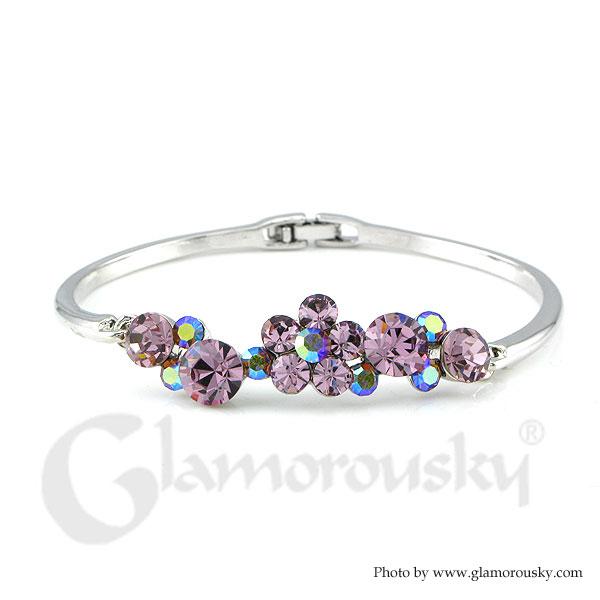 Glistering Flower Bangle with Purple Austrian Element Crystals