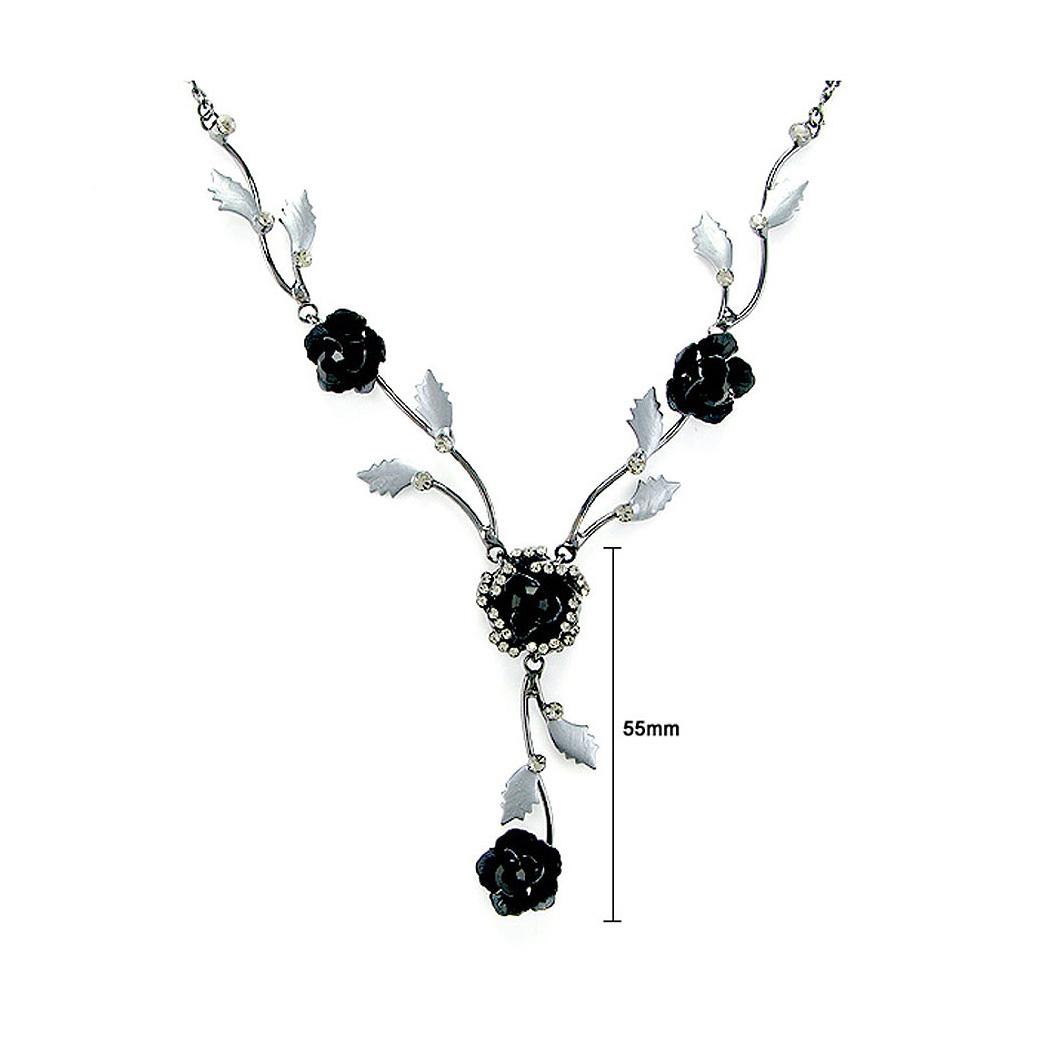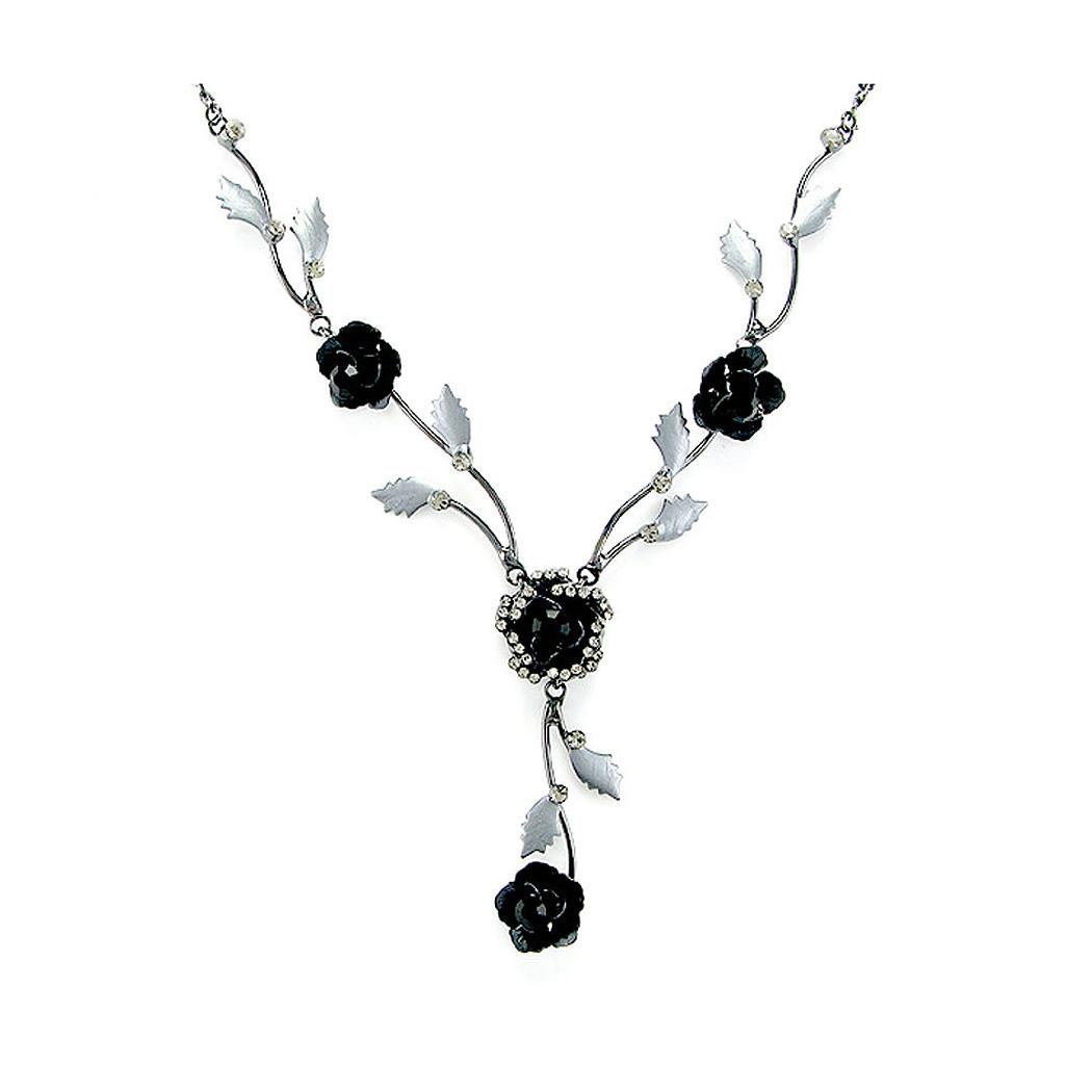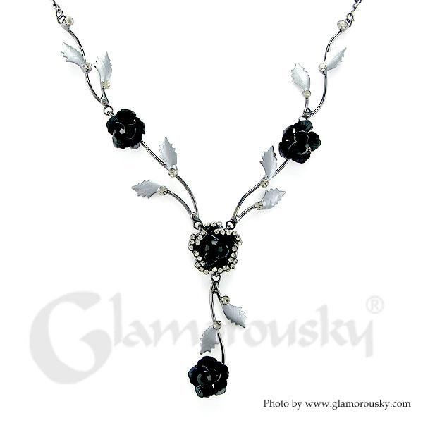Elegant Rose Necklace with Silver and Black Austrian Element Crystals