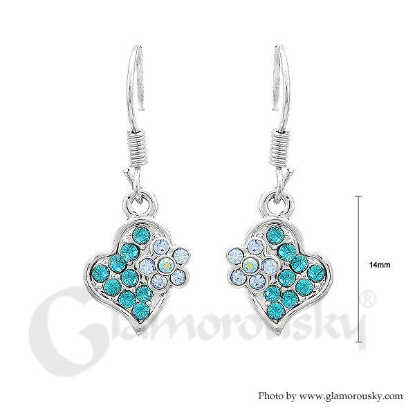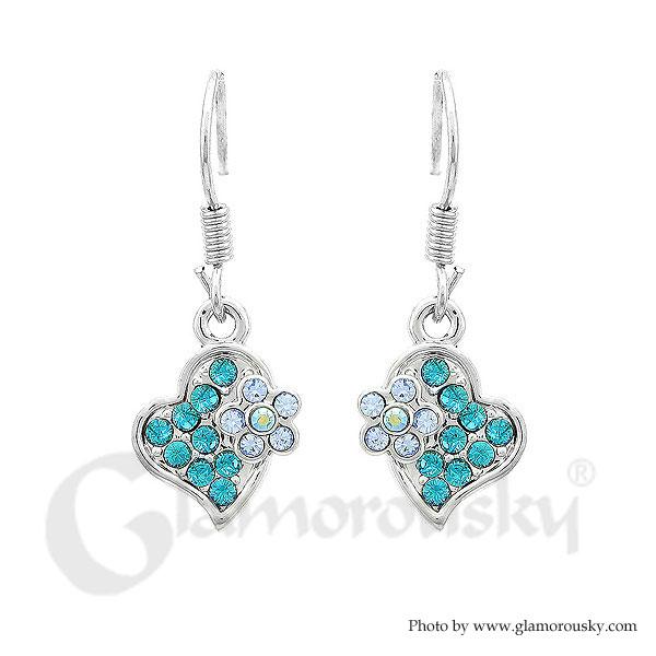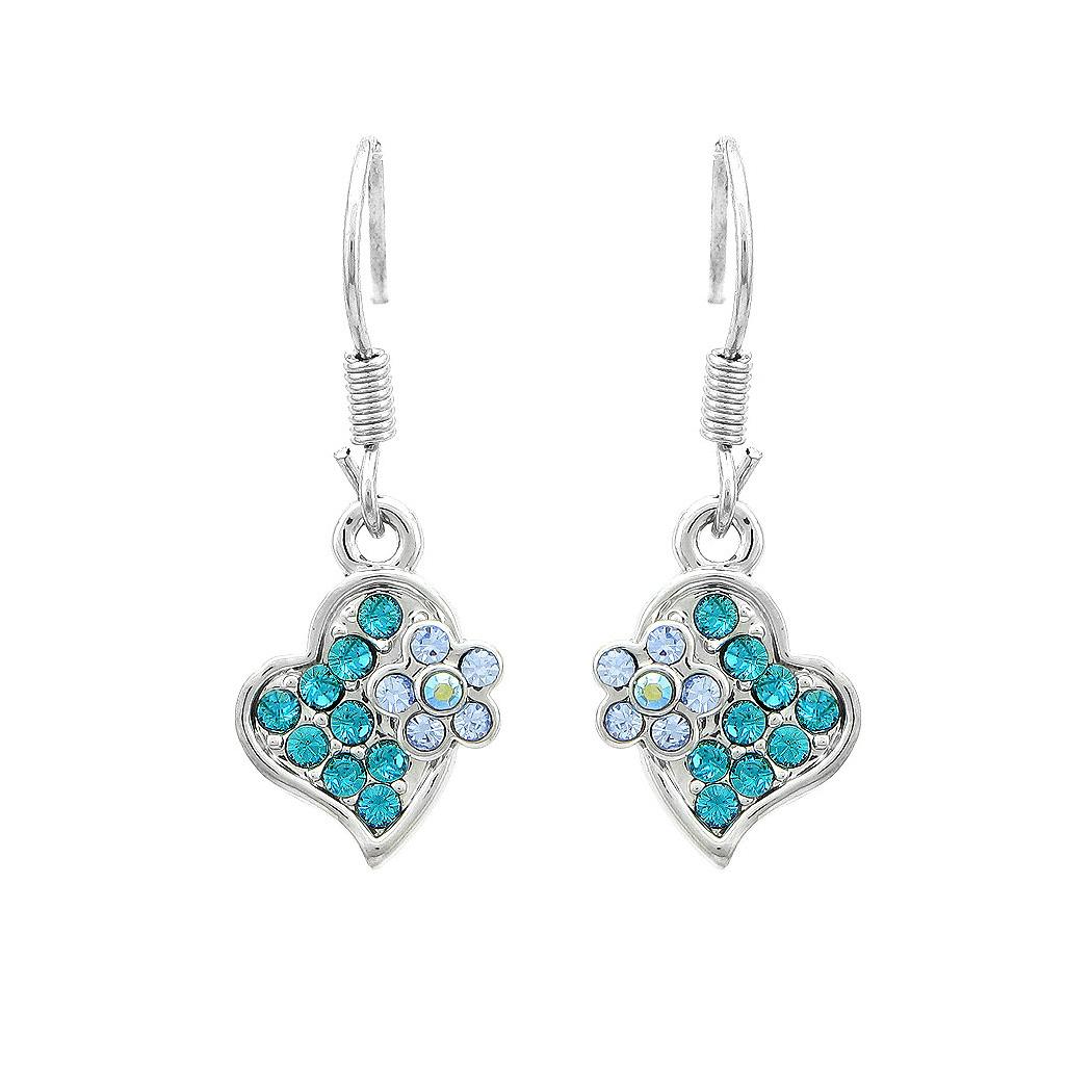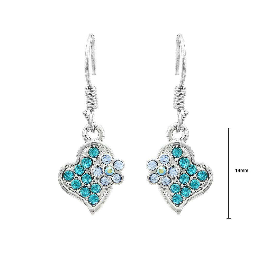 Flower in Sweet Heart Earrings with Blue Austrian Element Crystals