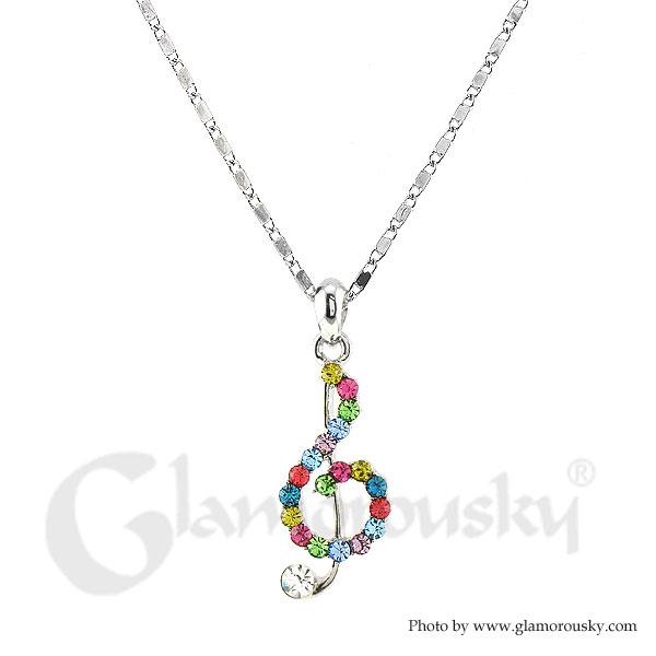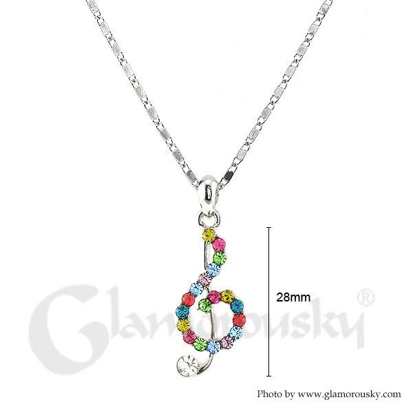 Musical Note Pendant with Multi-colour Austrian Element Crystals and Necklace