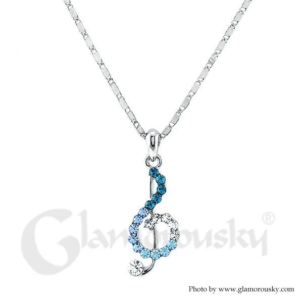 Musical Note Pendant with Silver and Blue Austrian Element Crystals and Necklace