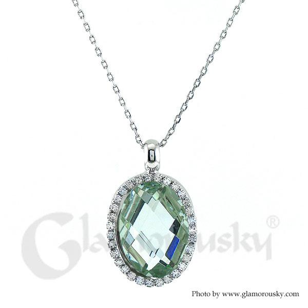 Glimmering Pendant with Silver Austrian Element Crystal Silver CZ and Necklace