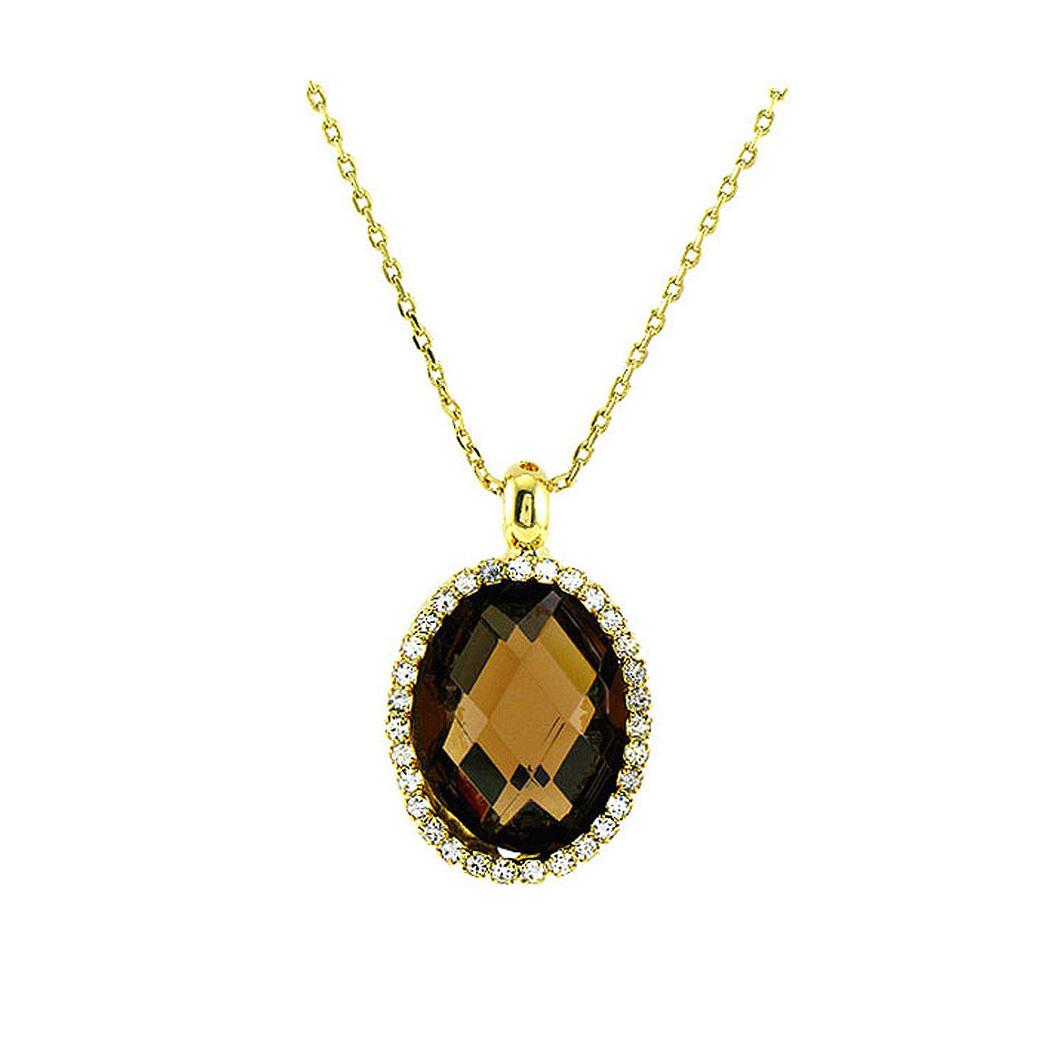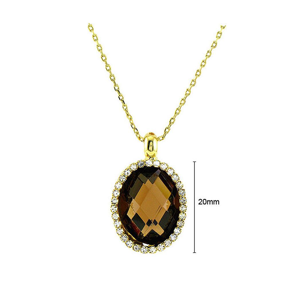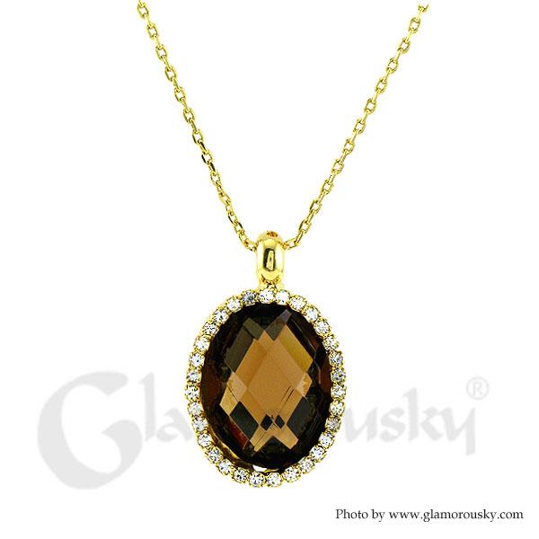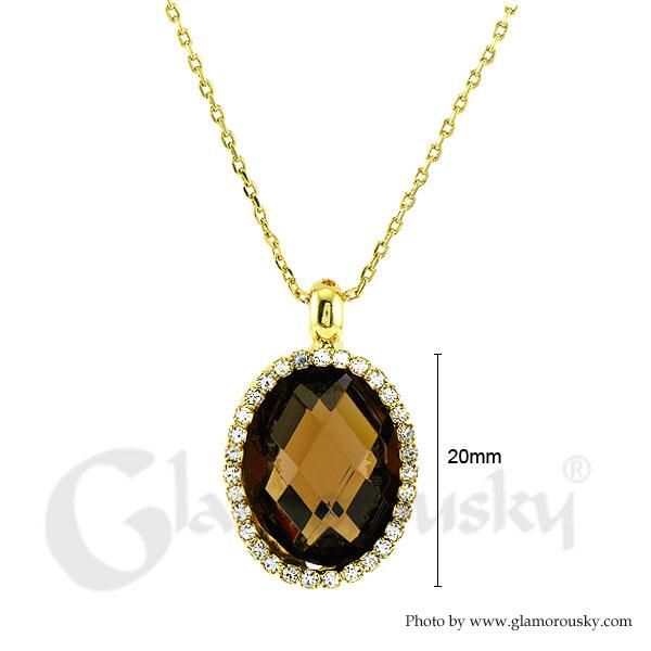 Glimmering Pendant with Silver Austrian Element Crystal Brown CZ and Necklace