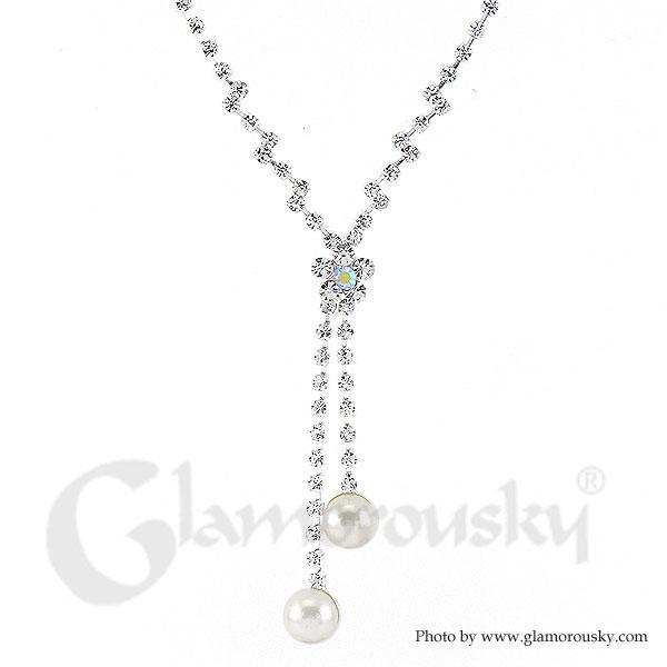 Elegant Fashion Pearl Necklace with Silver Austrian Element Crystal