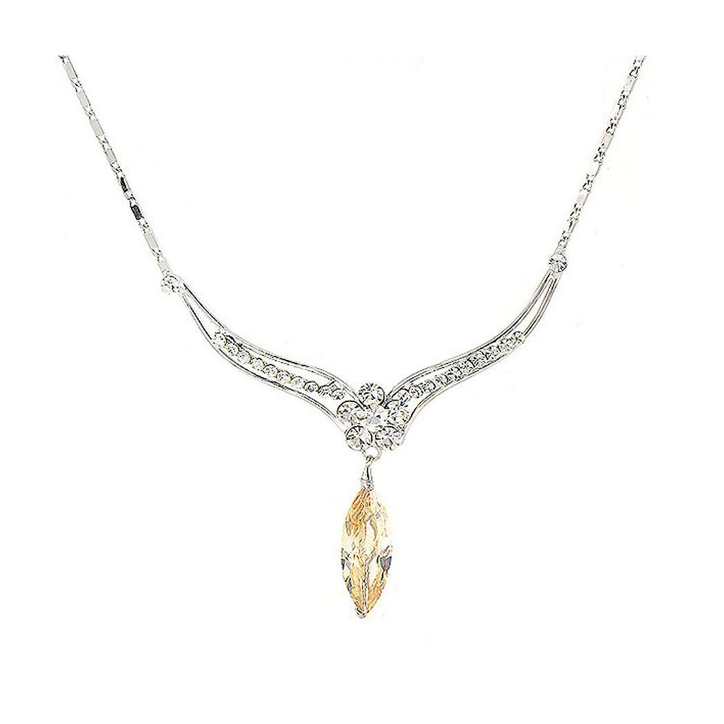Flower Necklace with Silver and Champagne Gold Austrian Element Crystals