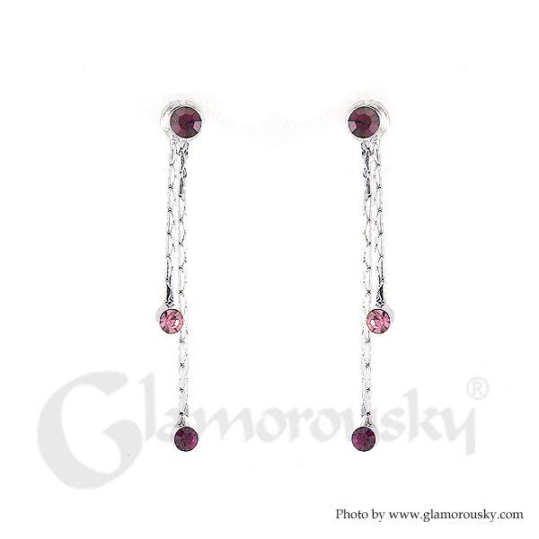 Simple Elegant Pair Earrings with Purple Austrian Element Crystals