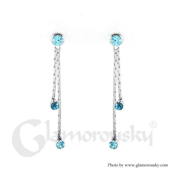 Simple Elegant Pair Earrings with Blue Austrian Element Crystals
