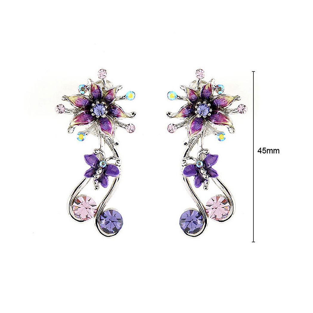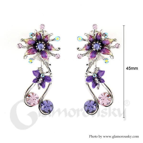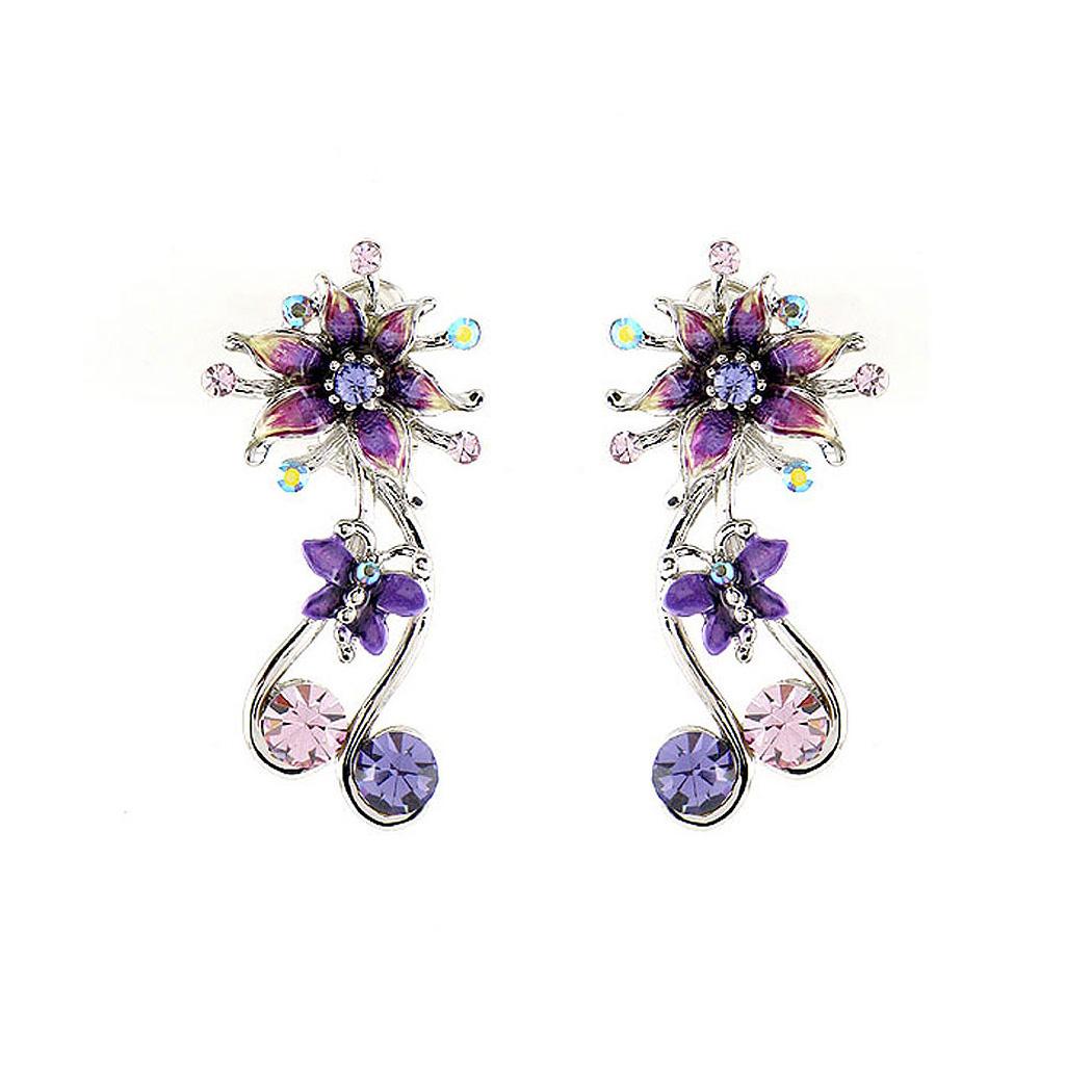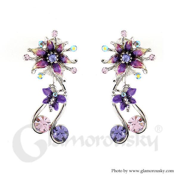 Flower and Butterfly Earrings with Purple Austrian Element Crystals