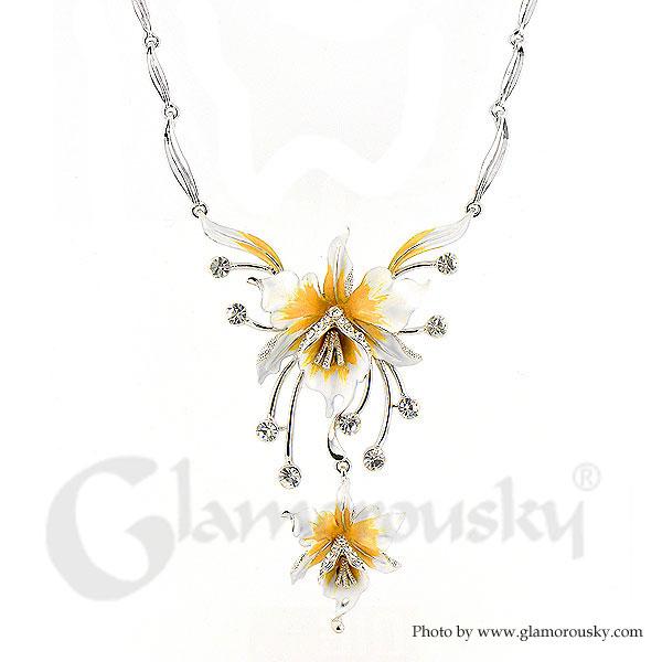 Dazzling Flower Necklace with Silver Austrian Element Crystal