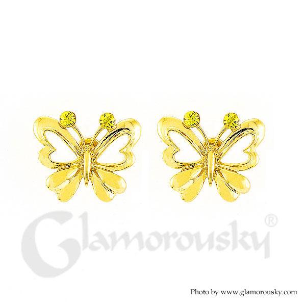 Dazzling Butterfly Earrings with Orange Austrian Element Crystal