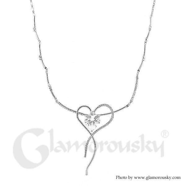 Glistering Heart Necklace with Sliver Austrian Element Crystal