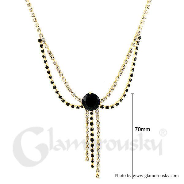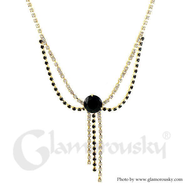 Glittering Necklace with Silver and Black Austrian Element Crystals