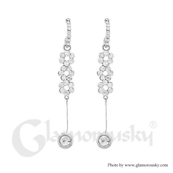 Exquisite Three Flowers Earrings with Silver Austrian Crystal